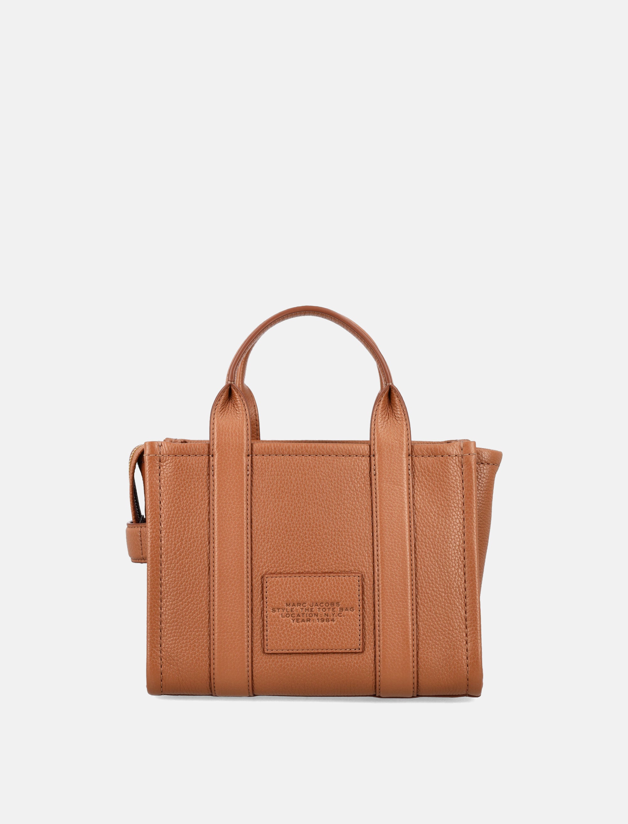 Crafted from premium grained leather, the Marc Jacobs The Mini Tote Bag combines contemporary attitude with timeless functionality. Defined by its structured silhouette and embossed logo, this compact accessory easily transitions from day to night. The detachable shoulder strap offers versatile styling, while the silver-tone hardware adds a refined finishing touch. Round top handles Zip closure Removable leather shoulder strap Debossed logo on the front Spacious main compartment Internal flat pocket with leather logo patch Silver-tone metal details