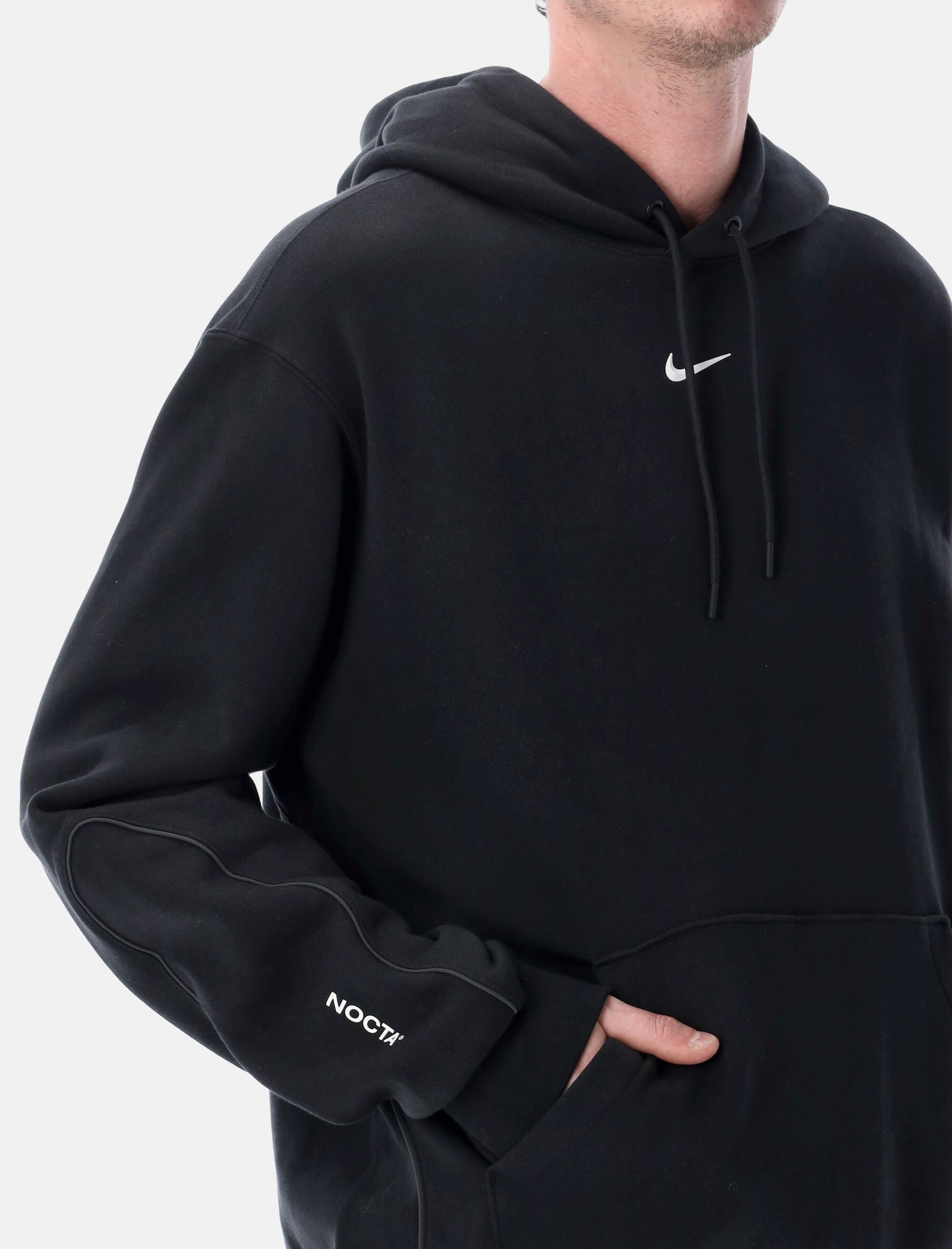 The Nike NOCTA hooded sweatshirt blends premium materials with a refined, technical aesthetic. Crafted from exclusive high-quality fleece, it features reflective detailing and a silicone Swoosh logo. Designed with a relaxed fit and functional pockets, this hoodie delivers everyday comfort with a modern urban edge. Exclusive soft, compact fleece Adjustable hood with drawstrings Front kangaroo pocket Internal functional pocket Reflective trim details Silicone Swoosh and NOCTA branding Andrea is 1,90 m and wears size L