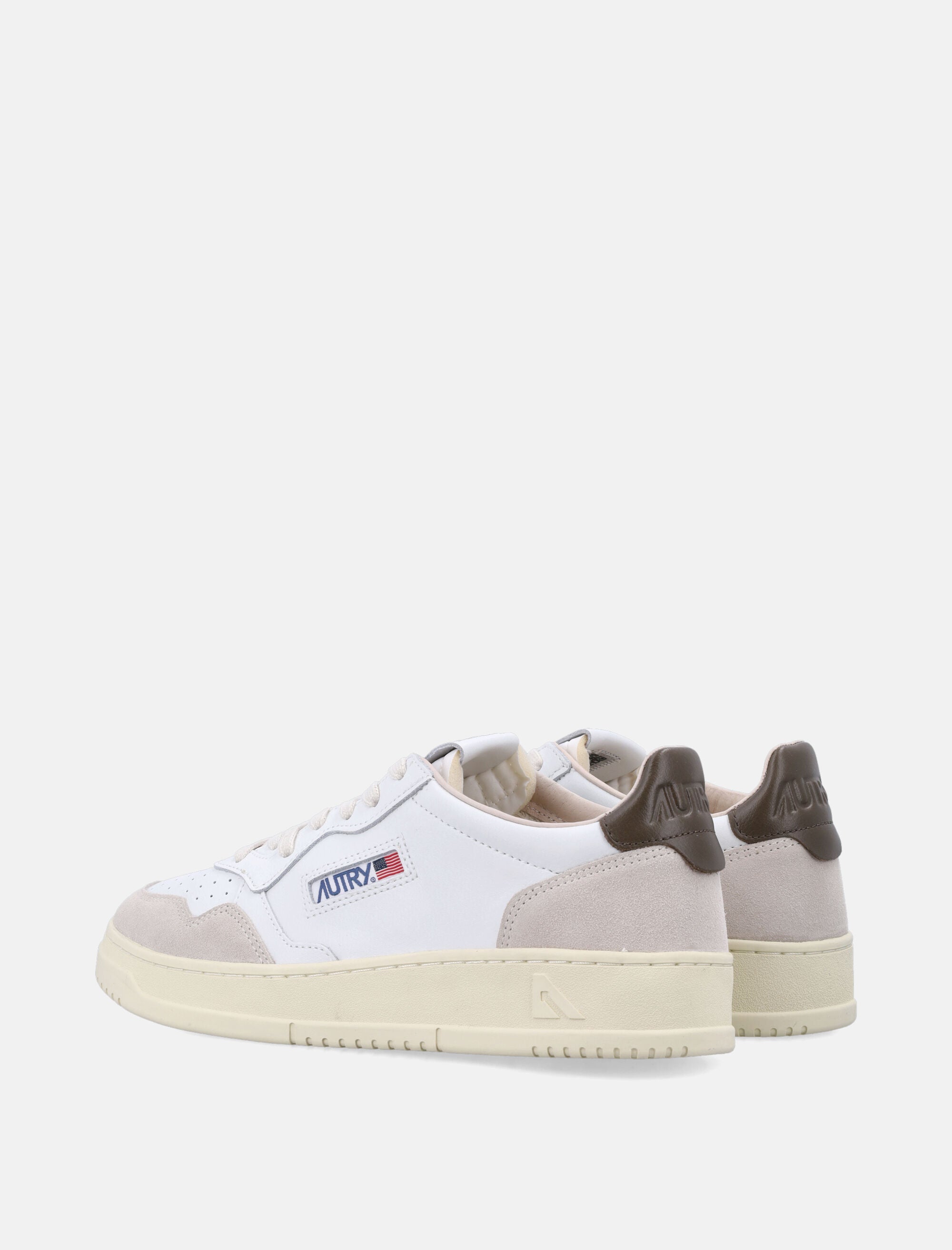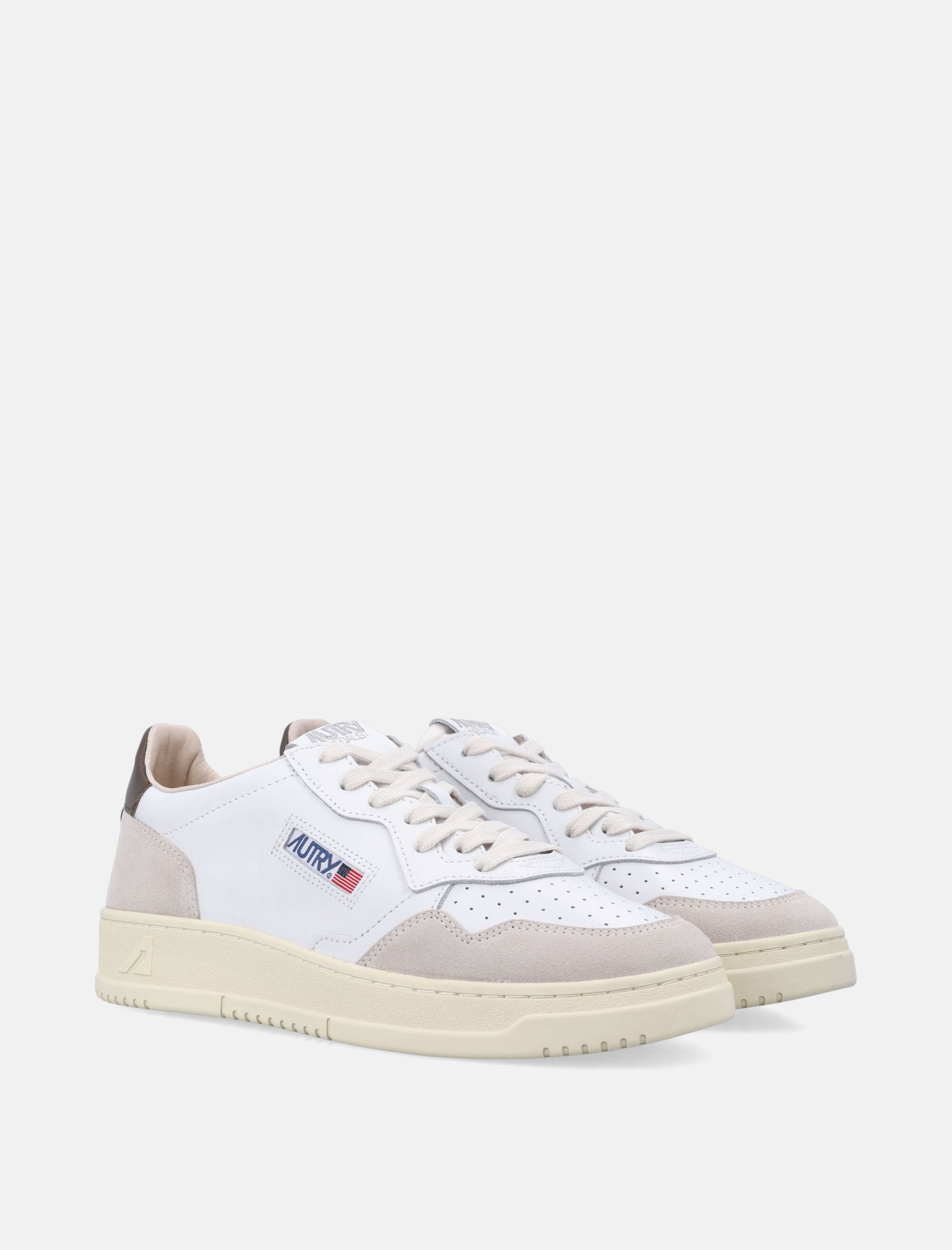 Autry Medalist Low white & teak leather and suede sneakers