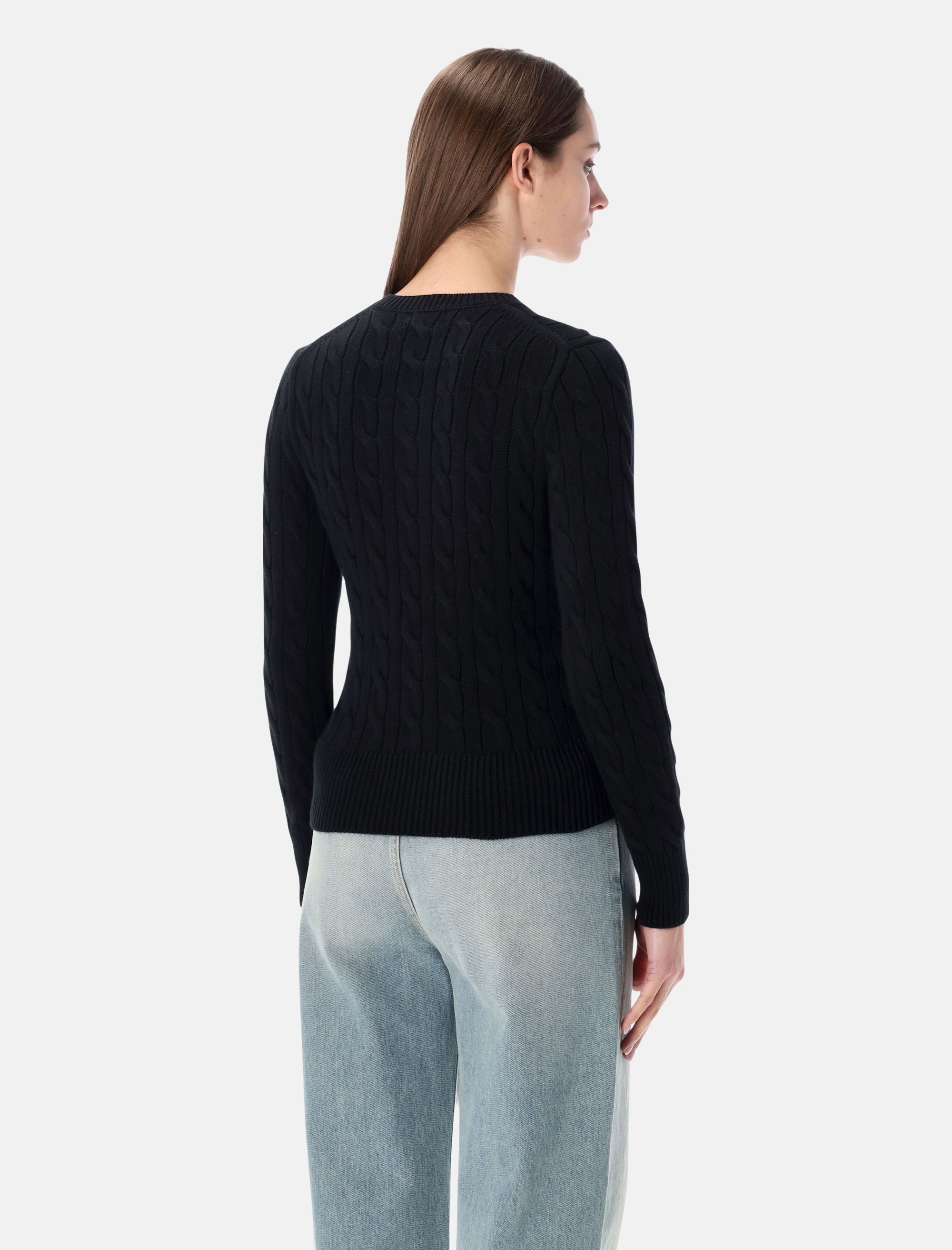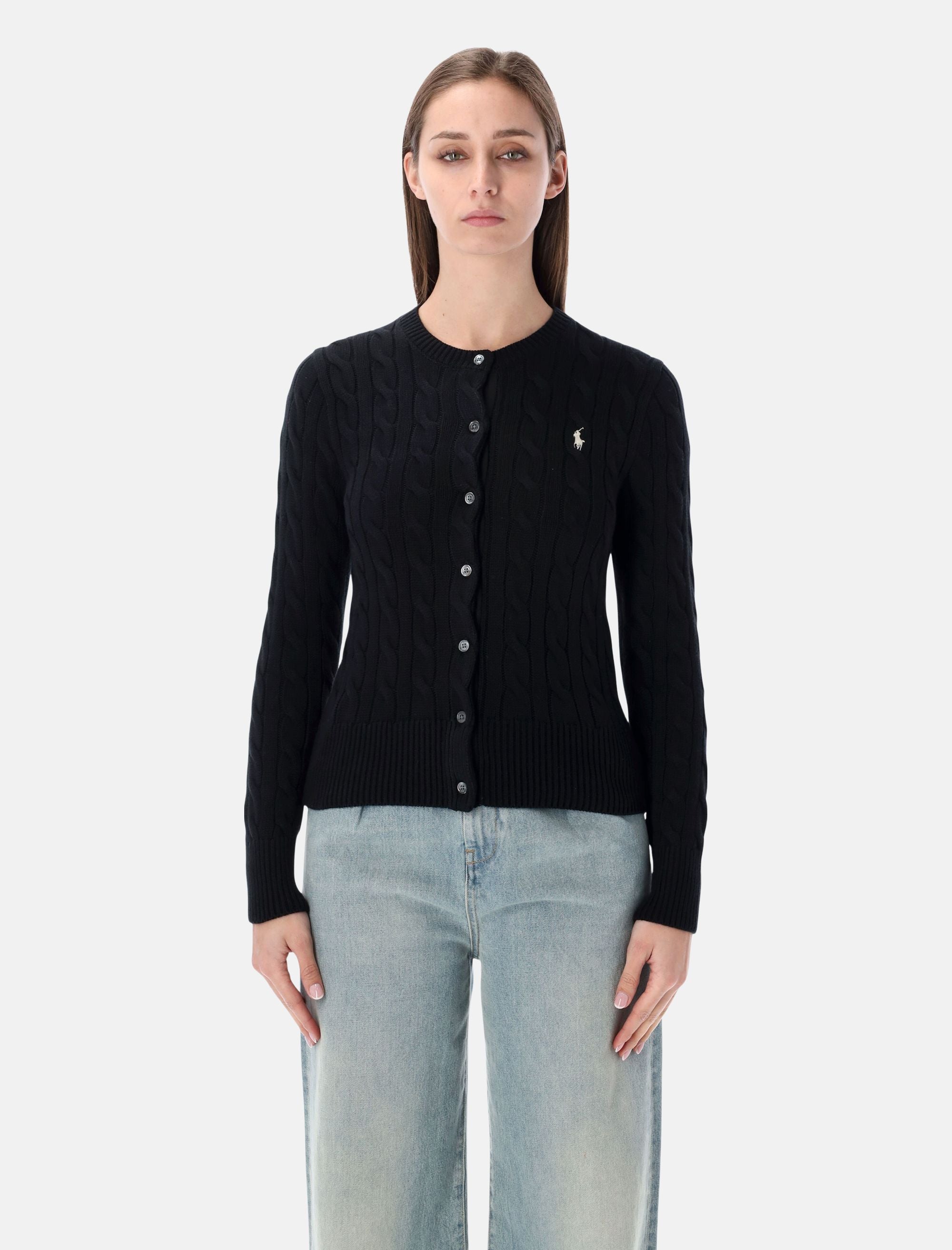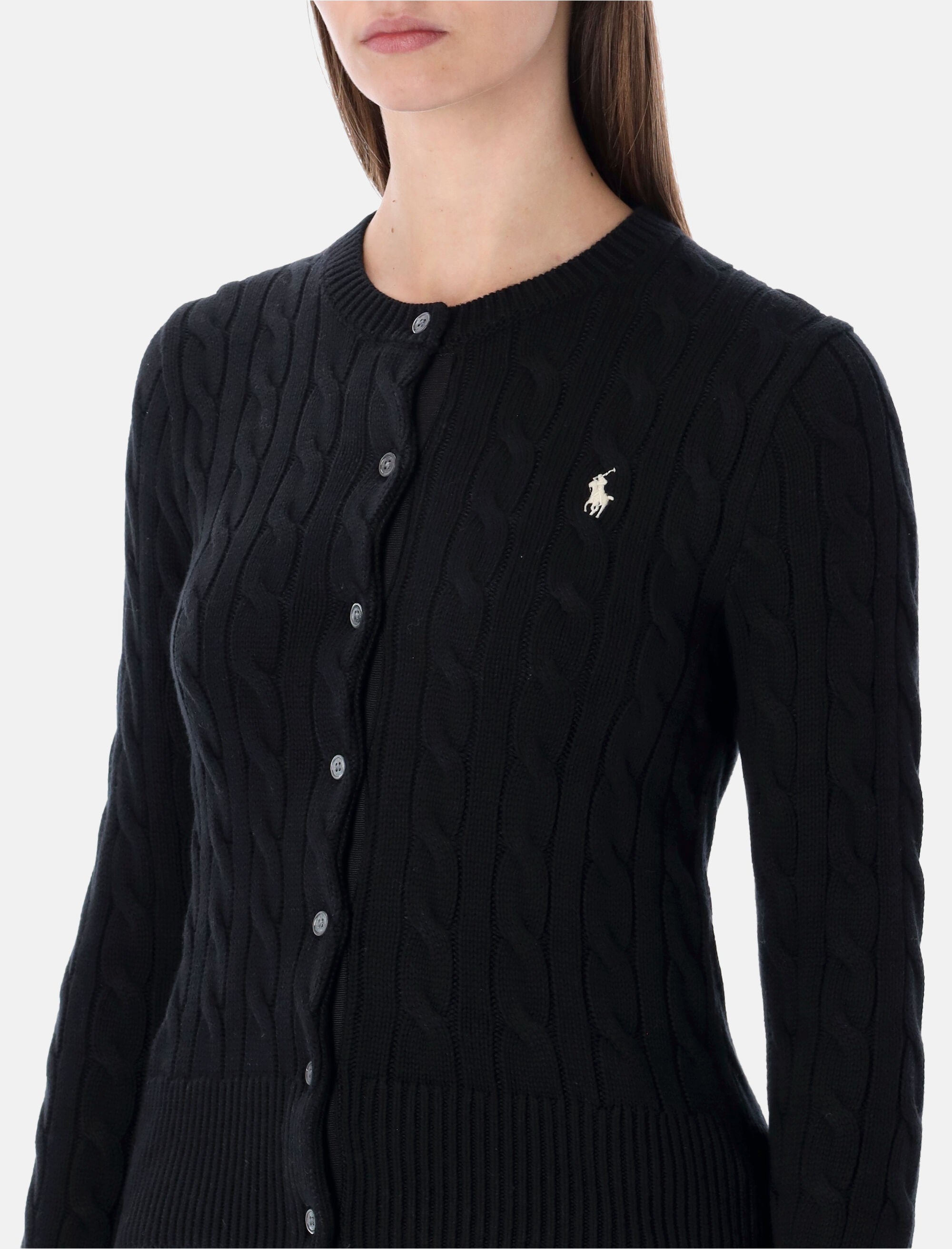 Questo cardigan in cotone a trecce dona un tocco femminile e delicato al guardaroba quotidiano. La silhouette slim e leggermente corta valorizza la figura, mentre l’iconico Pony ricamato aggiunge un dettaglio distintivo che richiama l’estetica raffinata di Polo Ralph Lauren. Lavorazione cable-knit in puro cotone Vestibilità slim Scollo tondo Chiusura con bottoni e bordo in gros-grain Maniche lunghe Finiture a coste Pony ricamato sul petto La modella è alta 1,75 m e indossa la taglia S