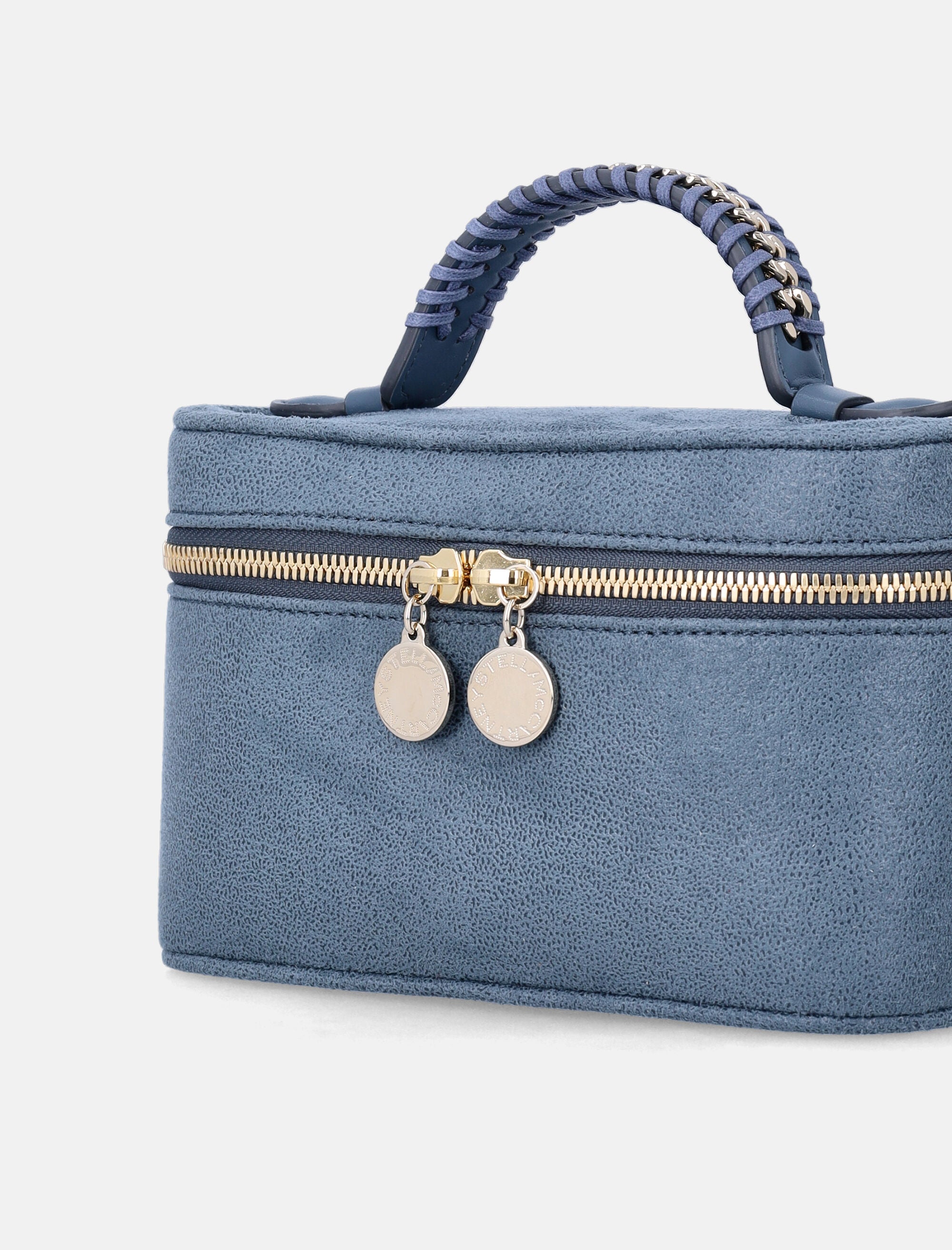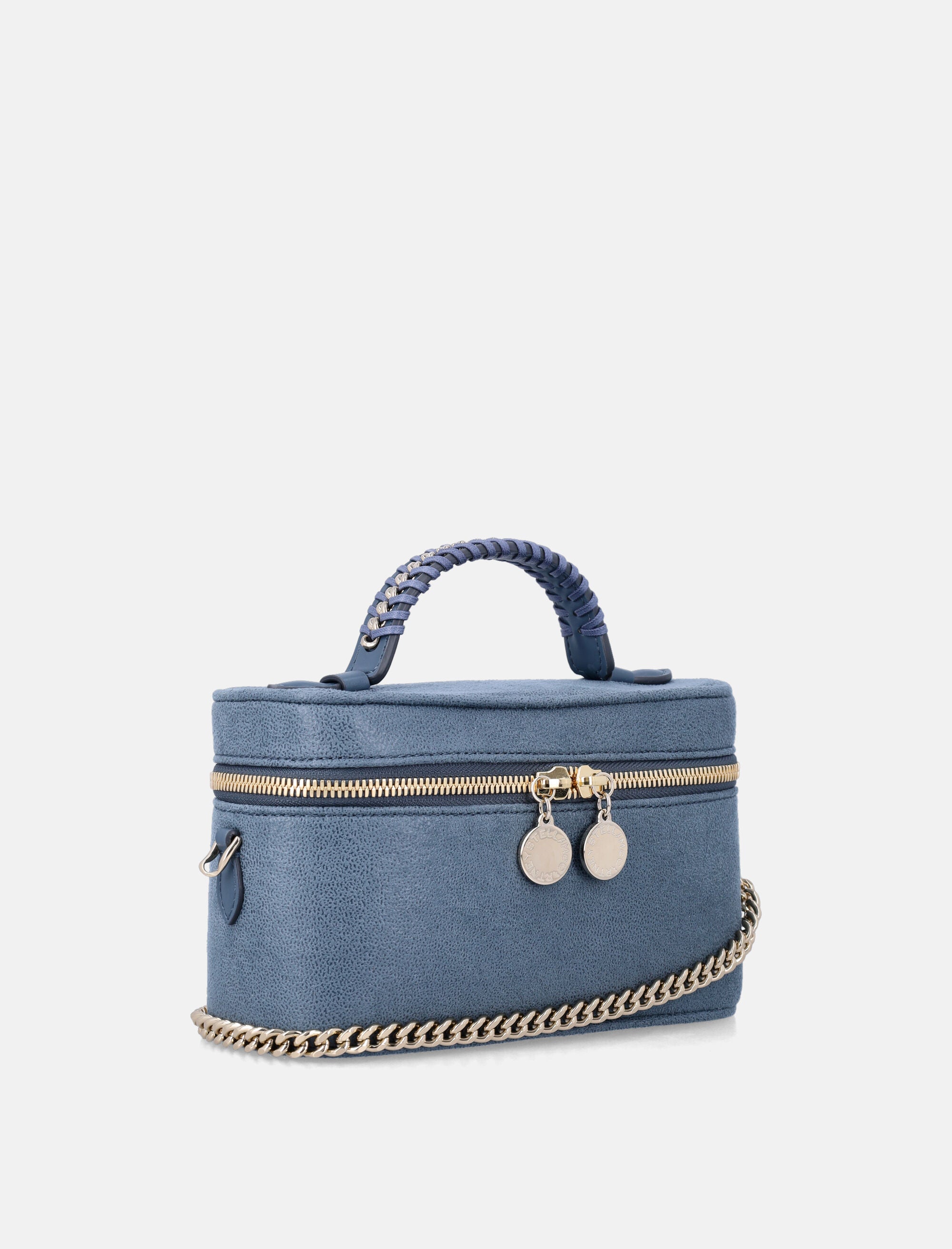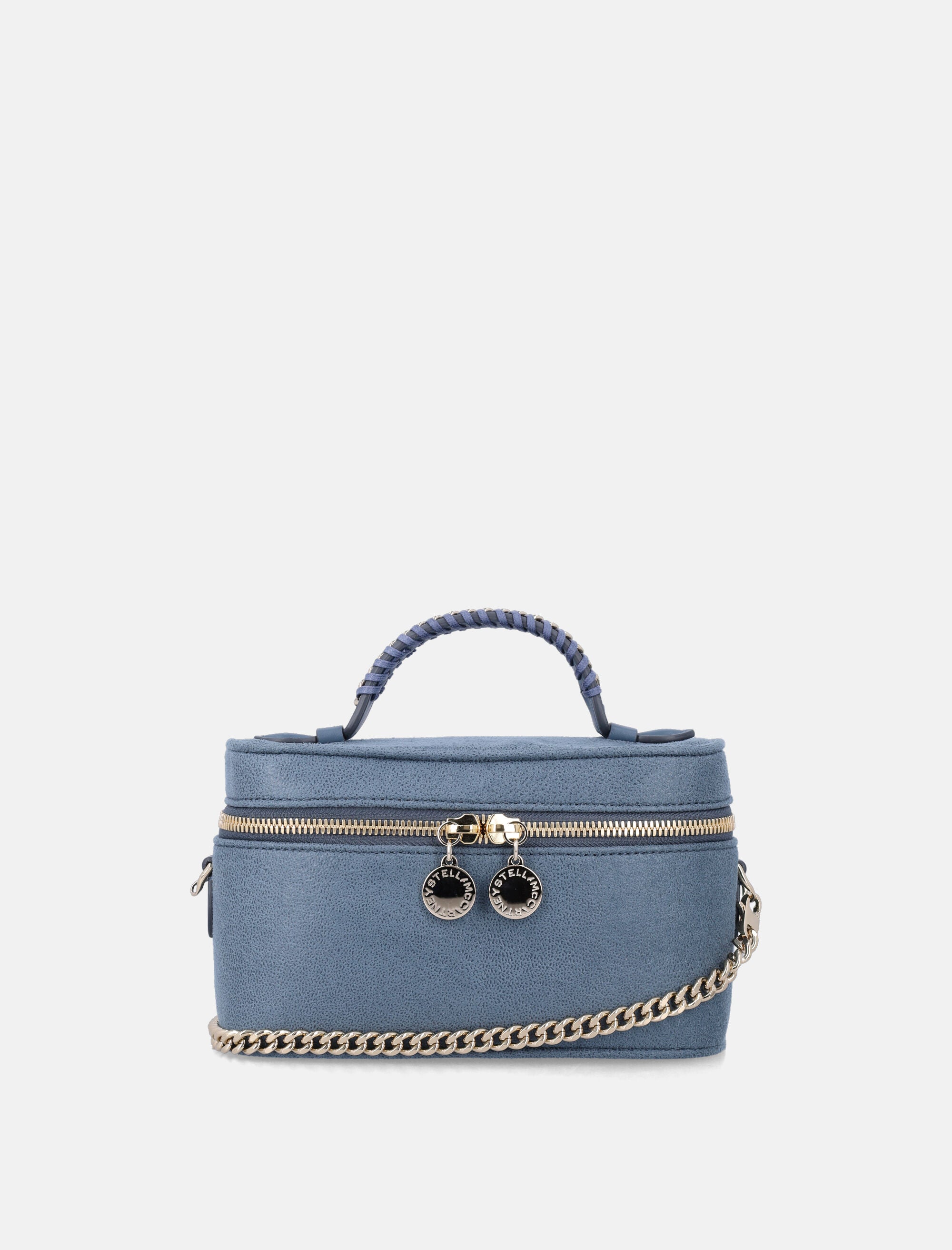 Parte della iconica famiglia Falabella di Stella McCartney, questa mini borsa vanity è realizzata in un'alternativa vegana alla pelle animale. La catena Falabella, i lacci e la chiusura con zip completano il design strutturato, da portare a mano o a spalla, unendo artigianalità sostenibile e stile senza tempo. Catena effetto diamante in ottone riciclato e alluminio Uno scomparto principale con chiusura zip Tasca interna Manico superiore e tracolla rimovibile con protezione spalla Altezza: 11,5 cm Larghezza: 20 cm Profondità: 8 cm
